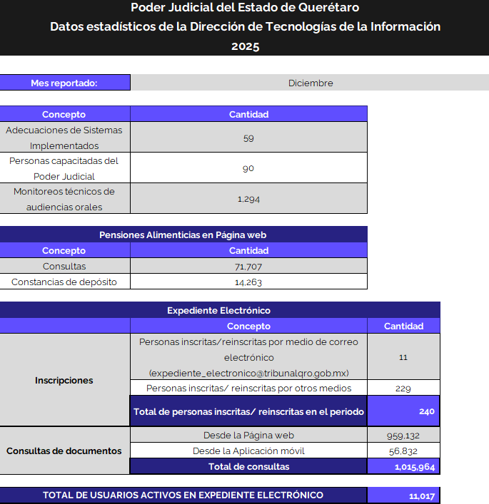 • Administrar la información capturada en los sistemas de indicadores estadísticos, implementados en las áreas del Poder Judicial;