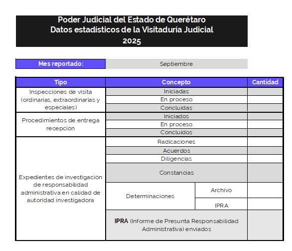 Atendiendo al nuevo diseño institucional establecido en el artículo 109 fracción III, párrafo sexto, de la Constitución Política de los Estados Unidos Mexicanos y de la publicación de la Ley General de Responsabilidades Administrativas (18 de julio de 2016); a partir del 24 de enero de 2020, la Visitaduría Judicial forma parte del órgano interno de control del Poder Judicial del Estado de Querétaro, con facultades y atribuciones de autoridad investigadora.